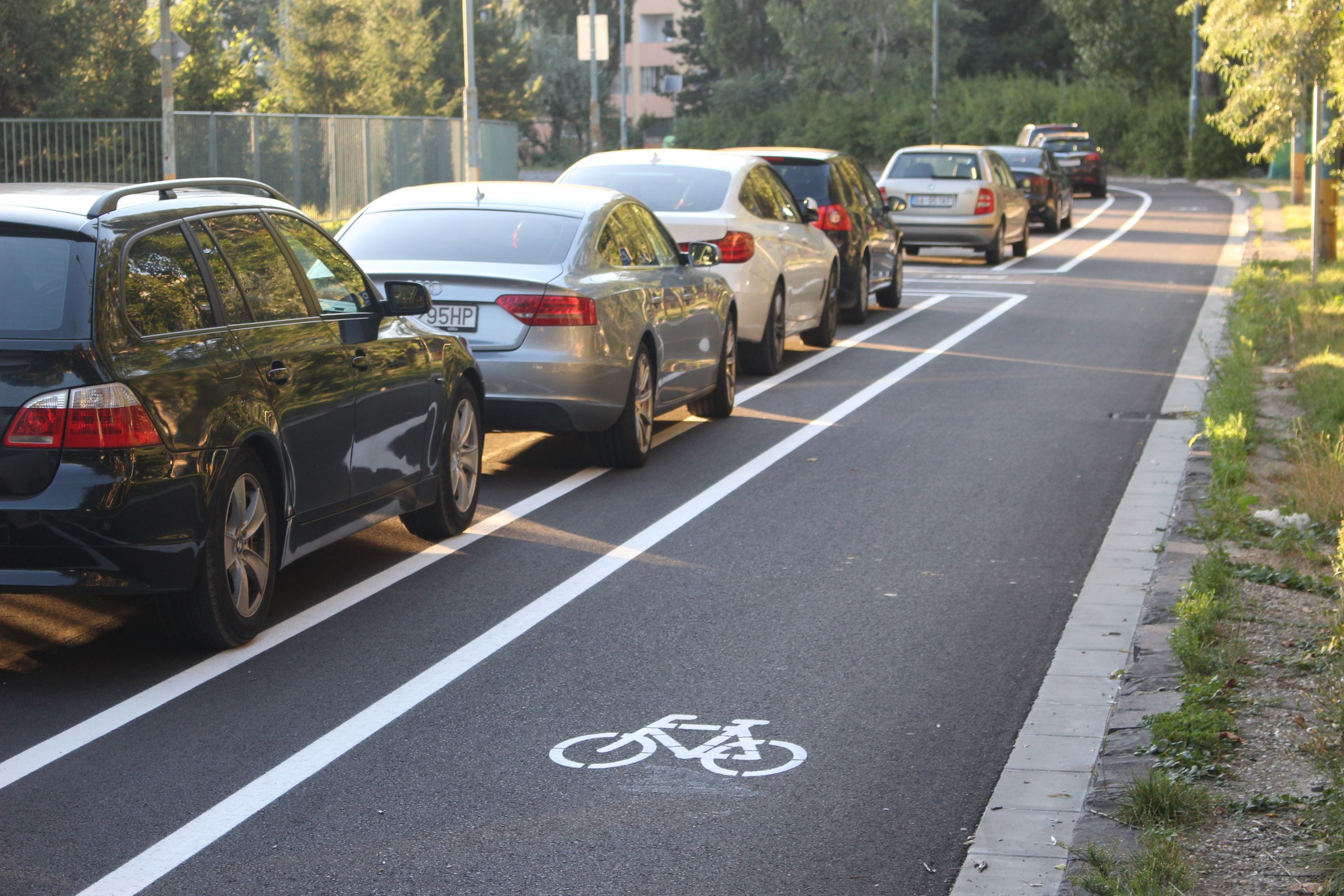 Cyklopruh umiestnený za parkujúcimi autami na trase S382 Mamateyova